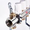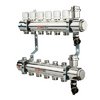 Коллекторный блок для систем водяного радиаторного и напольного отопления (водяной теплый пол) с регулировочными (настроечными) и ручными (с возможностью установки электротермического сервопривода) запорными клапанами, автоматическими воздухоотводчиками и дренажем. Диаметр коллекторов – 1 или 1 1/4".
