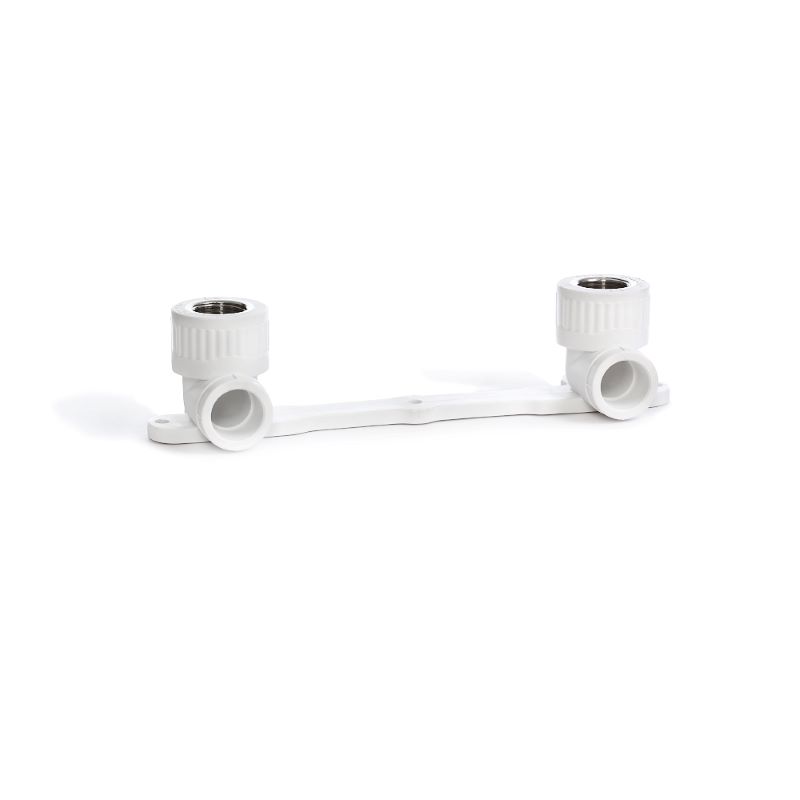 Главная » Сантехника инженерная » Труба полипропилен и фитинги » Полипропиленовые фитинги » Планка полипропиленовая с водорозетками » Планка угловая для смесителя 20x1/2" PPR VARMEGA