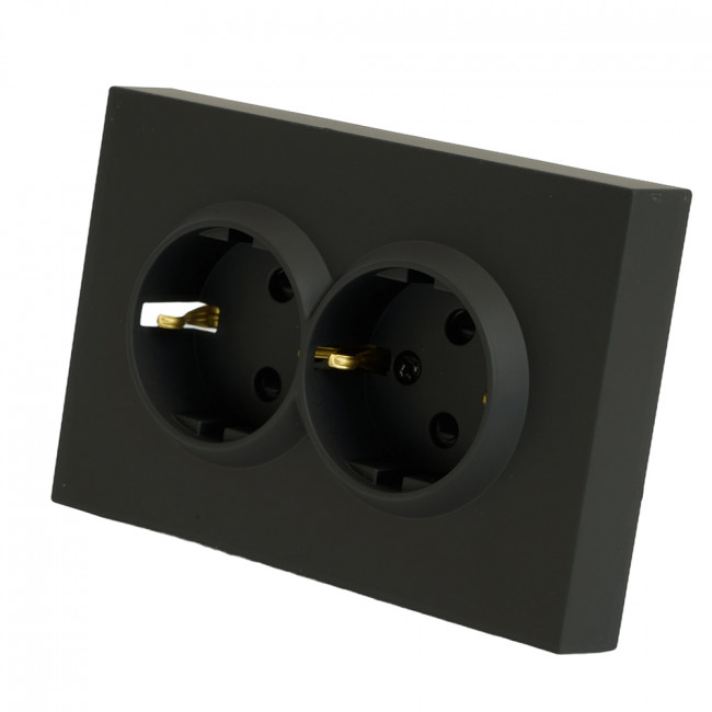 Розетка STEKKER RST16-5114-05 (срок службы 25 лет) на 2 гнездо, -, с заземлением. Материал: поликарбонат, бронза, сталь, цвет черный уголь, soft touch, размер 120*82*51мм. Номинальное напряжение 250, номинальный ток 16А, диапазон рабочих температур 0..+35°C, 20