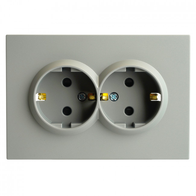 Розетка STEKKER RST16-5114-10 (срок службы 25 лет) на 2 гнездо, -, с заземлением. Материал: поликарбонат, бронза, сталь, цвет платиново-серый, soft touch, размер 120*82*51мм. Номинальное напряжение 250, номинальный ток 16А, диапазон рабочих температур 0..+35°C, 20