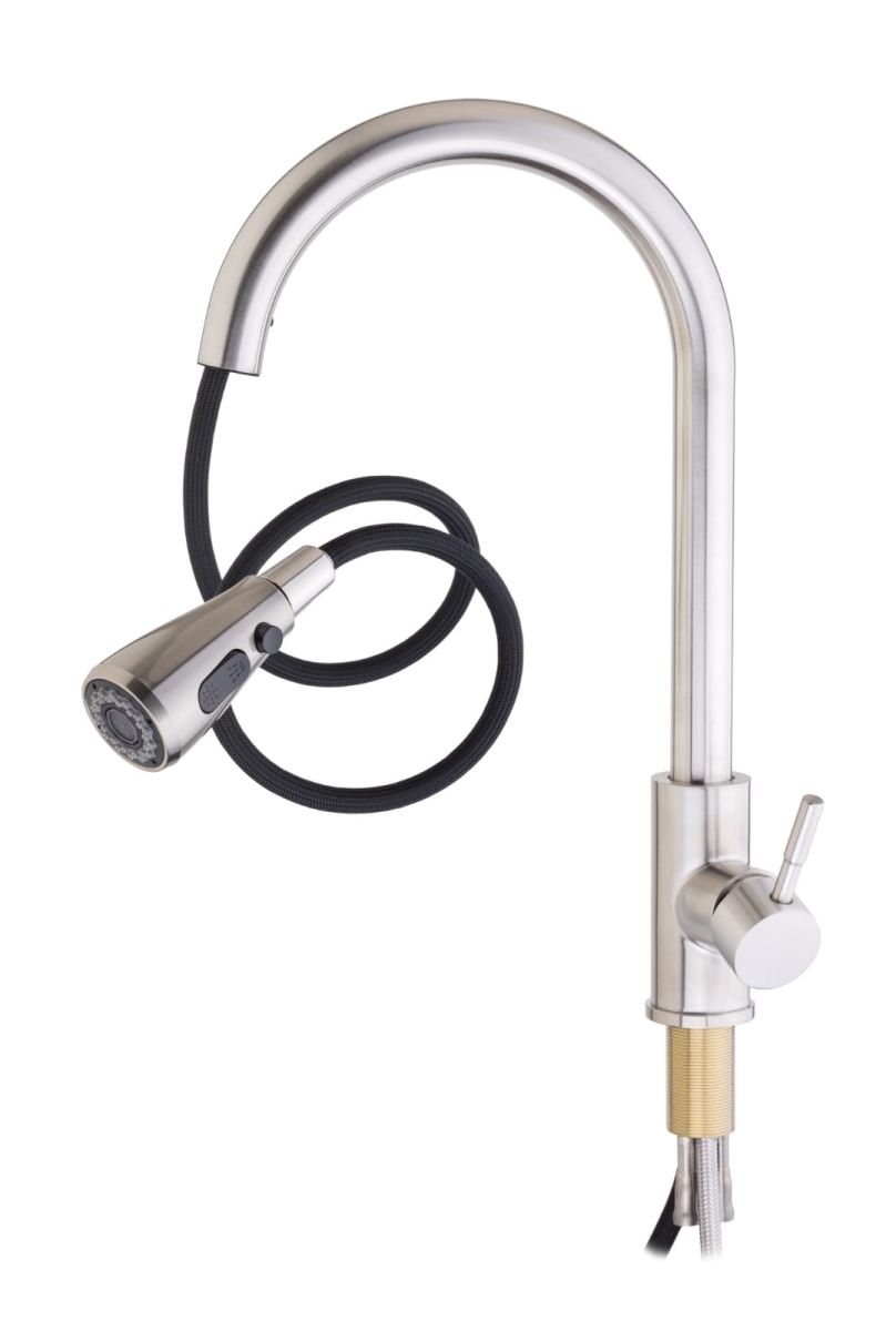 Смеситель д/мойки Sanday SD801-25 ,нержавейка, картридж D40,гайка,оружейная стальвыдвижная лейка
