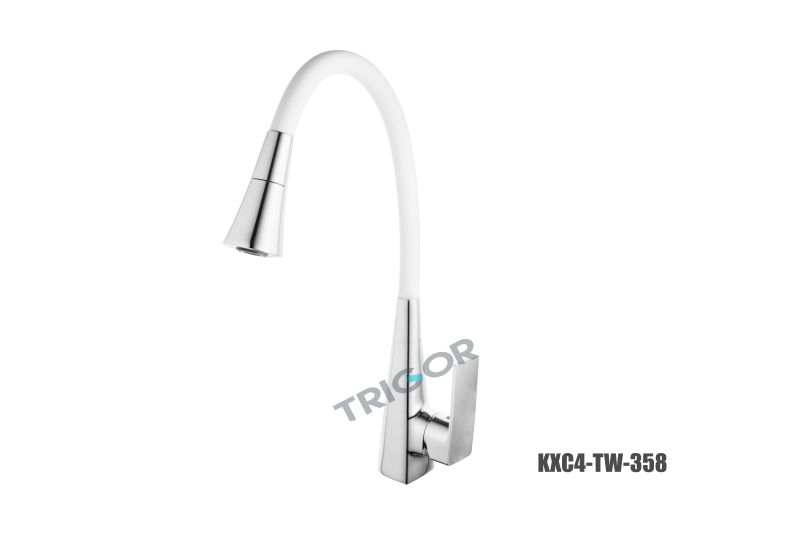 Главная » Сантехника » Смесители » Смесители для мойки на кухню » Смеситель д/мойки TRIGOR KXC4-PW-358, картр. d35,гайка, корпус хром, гибкий белый излив