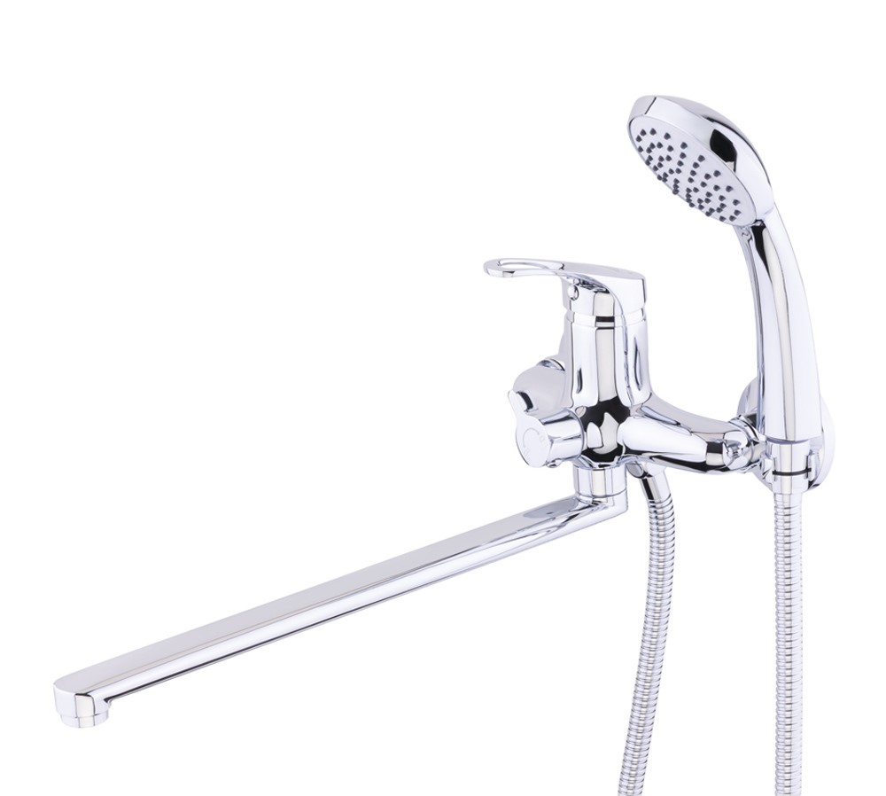 Главная » Сантехника » Смесители » Смесители для ванной » Смеситель д/ванны Sanday SD 400506-D латунь,хром,картридж D35, излив L-обр. 35 см. кроншт. лейки