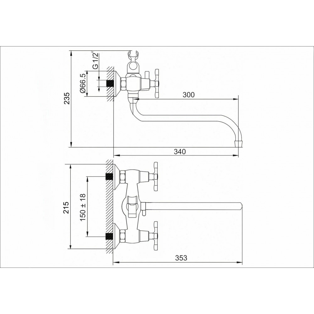 Смеситель д/ванны Sanday SD 630705, латунь,хром,кран-букса кер. LUX,излив L-обр. 35 см.