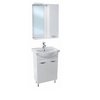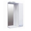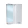 Недорогое зеркало для ванной комнаты от фабрики Sanita (Самара / Россия), выполненое в белом цвете, оснащено шкафчиком с двумя вкладными полками, закрывающимся распашной дверцей, а так же подсветкой (внутренний галогеновый светильник), выключателем, розеткой и удобной внешней полкой для полезных мелочей.